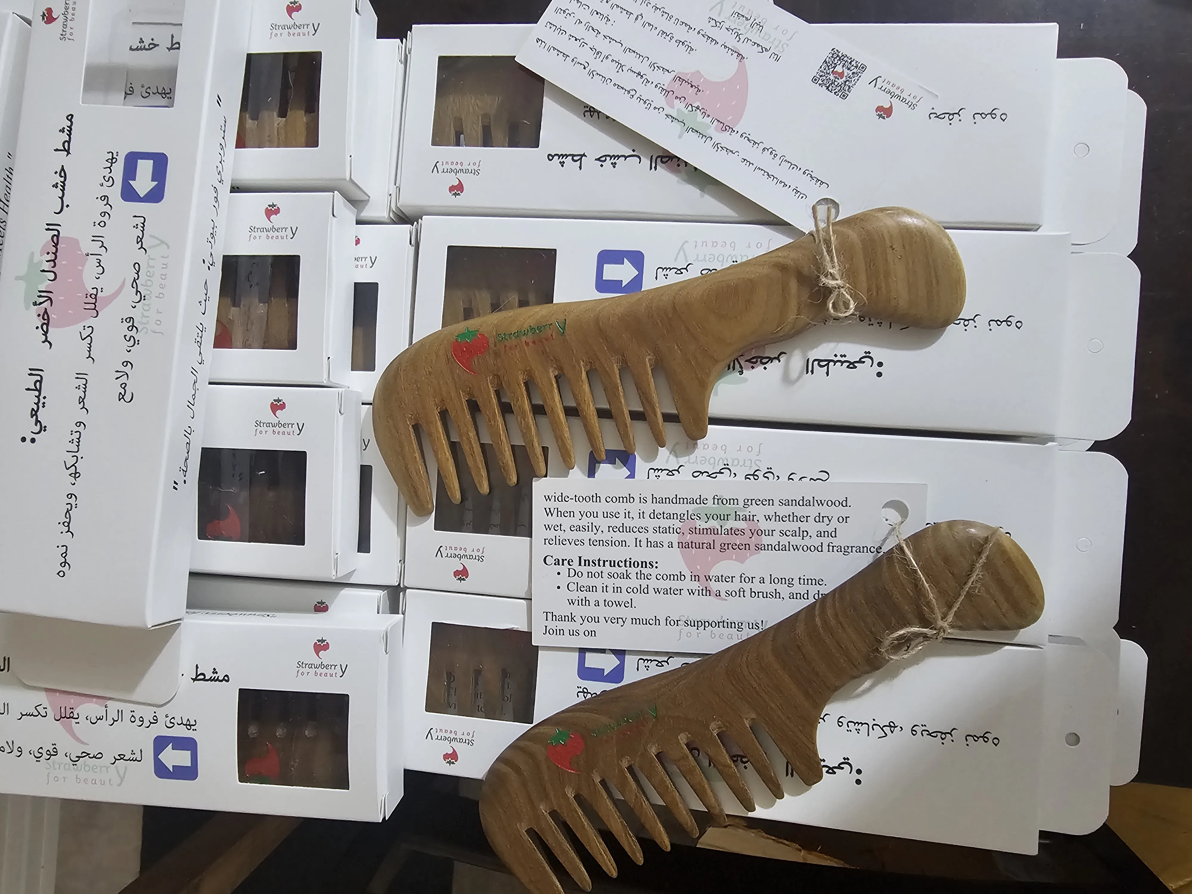 20cm Eco-Friendly Green Sandalwood Solid Wood Comb for Massage & Styling Free Logo Creative Wooden Comb for Home Use